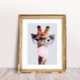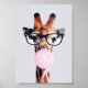 Affiche Girafe portant des lunettes soufflant bulle rose g