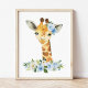 Affiche Girafe, Safari, Jungle, Fleurs Bleues, Nursery Gar