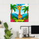 Affiche Giraffe de caricatures mignonnes dans un paysage t