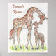 Giraffe and Her Calf - Impression artistique d'une aquarelle originale par Annie Mason Designs Personnalisez le nom de l'enfant