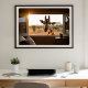 Bring a touch of the wild into your home with this stunning and playful design featuring a curious giraffe peeking through an open apartment window. Captured during golden hour, the warm African savanna glows in the background with soft sunlight, acacia trees, and natural earthy tones.