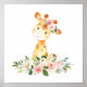 Affiche Giraffe, Safari, Fleurs roses, Nourriture pour fil
