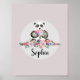 Affiche Filles Belles Fleurs Aquarelle Panda et Nom
