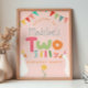 This cute and whimsical girls 2nd birthday welcome poster design features two silly geese with party hats, colorful bunting, and a flower, and can be personalized with a your girls name. The poster also features a pink background. The perfect farm design for your little one's second birthday!