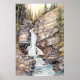 Glacier National Park Watercolor Painting Art Print, Redrock Falls Travel Art