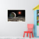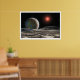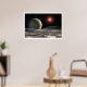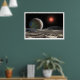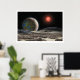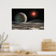 Gliese 581 c, montré du point de vue d'une éventuelle lune, est considéré comme un monde rocheux environ 1,5 fois le rayon de la Terre. Sa température est incertaine, mais elle se trouve près de la zone habitable de l’étoile, ce qui rend possible l’existence des océans et des lacs. Image d'un média mixte créée pour "The Search for a World Like Our Own : Imagine Earth 2.0", à swissnex San Francisco le 15 mai 2008. L'art original est dans une collection privée.