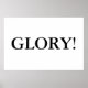 L'affiche est horizontale et porte le mot "GLORY !" au milieu en noir et blanc.