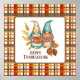 Le mignon Thanksgiving mur art montre une paire de gnomes tenant du citrouille et de la tarte avec l'arrière - plan plaid couleur automne