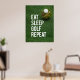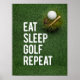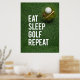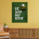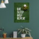 Ajoutez un peu d'humour et de personnalité à votre espace de golf avec cette Poster Funny Golf Quotes avec l'emblématique slogan "Eat Sleep Golf Repeat". Parfait pour tout golfeur qui vit selon cette devise, cette affiche apportera un sourire à tous ceux qui entrent dans la pièce. Que vous soyez en train de décorer votre grotte, votre bureau ou votre salle de golf personnelle, ce morceau d'art mural saura séduire les amateurs de golf. Cette affiche montre l'esprit du golf d'une manière ludique et légère. C’est un grand rappel des choses qui comptent vraiment : manger, dormir et bien sûr, jouer au golf ! Que vous le donniez à un autre golfeur ou que vous l'ajoutiez à votre propre espace, cette affiche est un moyen facile d'insuffler un humour de golf dans n'importe quelle chambre.