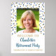 Poster de la fête de la retraite personnalisée avec de l'or et des confettis bleus.