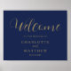 Affiche Gold Calligraphy Marine Blue Welcome Mariage Poste
