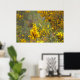 Photo of a beautiful gold finch sitting on some yellow flowers (Scotch Broom). The gorgeous male goldfinch totally blends into the field of flowering bushes of Scotch Broom. If you're a bird lover you'll enjoy this picture of a finch in its natural surroundings.