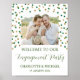 Poster d'accueil personnalisé pour la fête photo avec de l'or et des confettis verts.