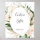 This gold tropical foliage floral cards and gifts sign is perfect for a rustic wedding or bridal shower. The design features hand-painted watercolor gold and tropical green foliage with elegant blush flowers.