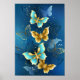 Composition of flying, jewelry, gold and dark butterflies on textured jewelry background. Golden butterfly.