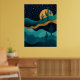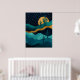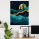 Immergez-vous dans un désert onirique sous un ciel étoilé avec cette magnifique illustration abstraite. Avec des vagues superposées de turquoise et d'or, des cactus silhoués et une lune brillante, ce décor cosmique de désert allie élégance et tranquillité.