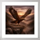 With its broad wings spread above a cliffside nest, the eagle conveys strength, vigilance, and quiet authority—capturing a moment that reflects both the harsh beauty of alpine landscapes and the spirit of the wild.