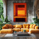A luminous color field abstract artwork featuring glowing golden yellow, burnt orange and deep crimson rectangles layered in soft atmospheric pigment. The radiant central field evokes warmth and calm while surrounding colors create depth and balance. Ideal modern abstract wall art for minimalist interiors, contemporary homes, studios and art lovers seeking elegant geometric color compositions.