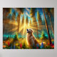 Un bel Golden Retriever dans une forêt enchantée et vibrante.