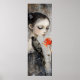 Affiche Gothique fille Corbeau Rose rouge