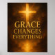 Apportez une atmosphère chaleureuse et réfléchie dans votre espace avec ce design de décoration murale chrétienne « Grace change tout ». Caractérisé par une croix radieuse, une lumière dorée éclatante, des nuages dramatiques et des oiseaux s'envolant, cette pièce crée un rappel visuel calme mais puissant de la foi, de la miséricorde et du renouveau. Les tons ambre riche lui donnent un aspect intemporel qui fonctionne magnifiquement dans un salon, une salle de prière, un bureau d'église, une chambre à coucher, un couloir ou un bureau.