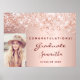 Une affiche pour une fête de fin d'études 2022 (ou toute année), féminine et glamour. Un arrière - plan métallique à l'aspect faux rose à la parties scintillant. Personnalisez et ajoutez votre propre photo du diplômé. Texte ; Félicitations ! Le texte : Graduate, et le nom sont écrits avec un grand script de style écrit main moderne.