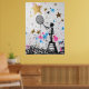 Cette oeuvre d'art fantaisiste de style graffiti représente un enfant debout sur une échelle, à l'aide d'un filet pour attraper des étoiles dorées dans le ciel, entourées de éclaboussures de bleu et de rose. Le contraste entre la silhouette noire et les couleurs vibrantes et ludiques crée un sentiment d'espoir et d'émerveillement, faisant une déclaration audacieuse sur les rêves, les aspirations et le potentiel illimité de l'imagination. Idéal pour ceux qui apprécient l'art urbain de rue avec un puissant message d'espoir et de possibilité, cette pièce ajoute une touche de magie à toute pièce.