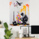 Cette oeuvre de style graffiti inspirant la pensée représente un soldat agenouillé à côté d'un fusil orné de fleurs colorées, symbolisant le contraste entre la guerre et la paix. Un corbeau vole au-dessus de la tête tandis que les tonalités orange et rose vibrantes ajoutent de la profondeur à ce commentaire puissant sur le coût humain des conflits et l'espoir de paix. Parfait pour ceux qui apprécient l'art urbain de protestation avec un message profond, cet article apporte un symbolisme puissant et des couleurs vives dans n'importe quelle pièce.