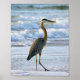 "Grand Héron bleu sur la plage" de Catherine Sherman. Rapport 8x10 Un grand héron bleu adulte se balade dans le surf de Cape Canaveral, Floride. Le héron garde l'oeil sur un pêcheur, hors caméra, qui jette sa ligne dans les vagues. Le grand héron bleu (Ardea herodias) est un grand échassier de la famille des hérons Ardeidae, commun près des rives d'eau libre et dans les zones humides sur la majeure partie de l'Amérique du Nord et de l'Amérique centrale, ainsi que les Caraïbes et les îles Galápagos. C'est le plus grand des hérons nord-américains avec de longues jambes, un cou sinueux, et une facture épaisse, comme un poignard. Malgré leur taille impressionnante, atteignant 1,5 mètre de haut, les Grands Hérons Bleus pèsent seulement 1 à 10 kg grâce en partie à leurs os creux, une caractéristique que tous les oiseaux partagent. Les Grands Hérons bleus se trouvent dans les habitats d'eau salée et d'eau douce, des côtes ouvertes, des marais, des pentes, des berges de rivière et des lacs aux étangs à poissons rouges jardins. Ils se nourrissent aussi dans les prairies et les champs agricoles. Les oiseaux nicheurs se rassemblent en colonies ou en "héronys" pour construire des nids de bâtons en hauteur.