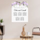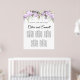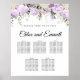 De magnifiques roses violets et une verdure verdoyante créent des bordures luxuriantes au sommet de ce tableau de sièges fleuris. Les noms des couples mariages sont écrits dans une police de script classique. Cet élégant tableau de sièges fait partie de la collection Violette qui contient des affiches, des programmes, des menus, des cartes de place et un décor de table qui vous permettent de personnaliser facilement et à un prix abordable votre cérémonie de mariage et réception.