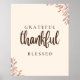 Caractéristiques 'Grateful, Thankful, Blessed' texte sur un arrière - plan brun clair/crème avec design d'angle botanique. Des teintes marron pour la plupart parfaites pour l'automne et la saison des récoltes ou à tout moment !