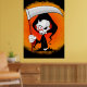 Caractère faucheuse Déplaisante et drôle, avec un long manteau à capuchon noir foncé, brandissant une escroquerie avec laquelle il utilise pour récolter des âmes. Illustration Vecto originale Copyright BluedarkArt.