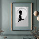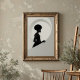 Faites une déclaration saisissante avec cette impression d'art noir et blanc captivante, une démonstration magistrale de mode avant-gardiste et de composition artistique. Cet élégant portrait de profil présente une femme de grâce profonde, ornée d'un ensemble noir sophistiqué comprenant un grand casquette circulaire à bords plats, une robe sur mesure avec une taille définie, et de longs gants élégants. Son teint foncé crée un contraste puissant par rapport à l'arrière - plan blanc immaculé, qui est encadré de façon spectaculaire par un élément d'architecture blanche concentrique et incurvée. Son regard pensif et ses mains poisées reposant sur une surface blanche ajoutent à l'allure énigmatique de l'oeuvre, mettant l'accent sur l'interaction de la lumière, de l'ombre et des formes minimalistes. Parfait pour les espaces de vie modernes, les studios de mode ou tout décor à la recherche d'une touche d'élégance unique, d'un art audacieux et d'un récit visuel vraiment inoubliable.