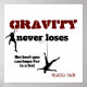 La gravité ne dort jamais. La gravité ne ment jamais. Il ne prend jamais un jour de congé, il n'appelle jamais malade et il ne PERD jamais. En gardant cela à l’esprit, CLIMB ON, mais sachez que vous ne pouvez pas gagner contre la gravité, alors il suffit d’accepter la cravate et de vivre pour grimper un autre jour.