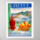 Affiche Grèce, fruits sur table, fenêtre vue paysage