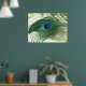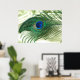 Jolie photo de vie morte une plume de paon parfaite. L'arrière - plan vert pomme rend les couleurs de la plumes extraordinaires et vibrantes.