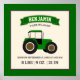 Baby room birth announcement Poster featuring modern typography and cute green tractor. Add all your lovely details on this easy-to-use template to make your own unique birth stats Poster.