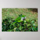 Painting of wild green parrot on the green bush in a park in Spain. Also known as the Monk parakeet or Quaker parrot