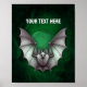 This economical artwork poster has a grey bat with its wings spread coming out of a spooky eerie green cave with trees surrounded in black. Customise your text with the template.