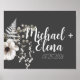Affiche Gris foncé et blanc mur Mariage floral Imprimer