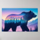 Affiche Grizzly Ours Double exposition Animal Nature Extér