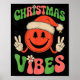 Affiche Groovy Christmas Vibes Smile Face Santa Hat Xmas T