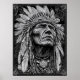 Un guerrier amérindien avec une coiffure en plumes sur un arrière - plan noir
