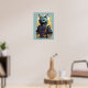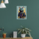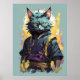 Affiche Guerrier Chat Ninja Éclaboussure de Feu Gris Cool