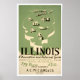 De la vaste collection d'affiches de l'Administration des projets de travail (WPA) et de War de Zazzle, un assortiment extraordinaire d'images iconiques destinées à promouvoir les arts, le bien-être public et le patriotisme, cette affiche commémorative présente une affiche pour le Federal Writers' Project faisant la publicité du volume de la American Guide Series sur l'Illinois, montrant un aperçu de la carte de l'État, créée en 1940.