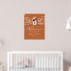 Bienvenue à notre mariage rustique élégant ! Cette affiche charmante présente un fond orange brûlé avec une touche bohème, accentuée par une palette de couleurs bordeaux et pêche. Le centre de table est un pot Mason floral mettant en valeur les initiales du couple dans une calligraphie moderne élégante. Les guirlandes lumineuses ajoutent une lueur chaude et invitante, créant l'atmosphère parfaite pour notre journée spéciale.