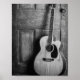 Affiche Guitare penchée contre porte en noir et blanc