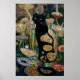 Affiche Gustav Klimt Chat noir dans un jardin de fleurs, A