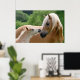 Chevaux haflinger, jument avec poulain côte à côte, câlins. Le mignon cheval avelignese se tourne en toute confiance vers sa maman, mignonne ponies photo prise par Katho Menden, cette impression photographique sur papier d'affiche est une idée cadeau pour les filles et les amateurs de cheval. http://www.zazzle.com/kathom_photo