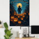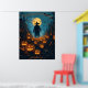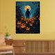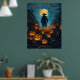 Entrez dans une scène d'Halloween hantante avec ce poster étrange avec un épouvantail aux yeux brillants dans un champ de maïs rempli de citrouilles sous la pleine lune. Jack-O'-Lanterns éclairent le chemin, ajoutant une lueur menaçante au cadre éffrayant. Idéal pour la décoration d'Halloween, les maisons hantées ou toute personne à la recherche d'un rafraîchissement à la décoration saisonnière. Customisez le texte pour une touche Halloween personnalisée.
